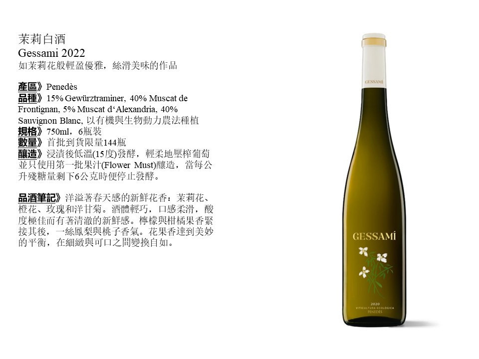 茉莉白酒,Gessami,2022,西班牙,格拉莫娜酒莊
