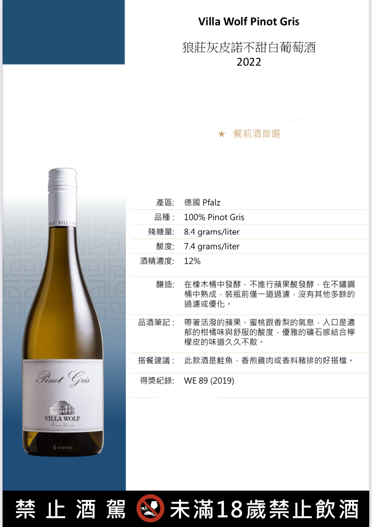 狼莊,酒莊,灰皮諾,白葡萄酒,Villa Wolf,Pinot Gris Dry,德國